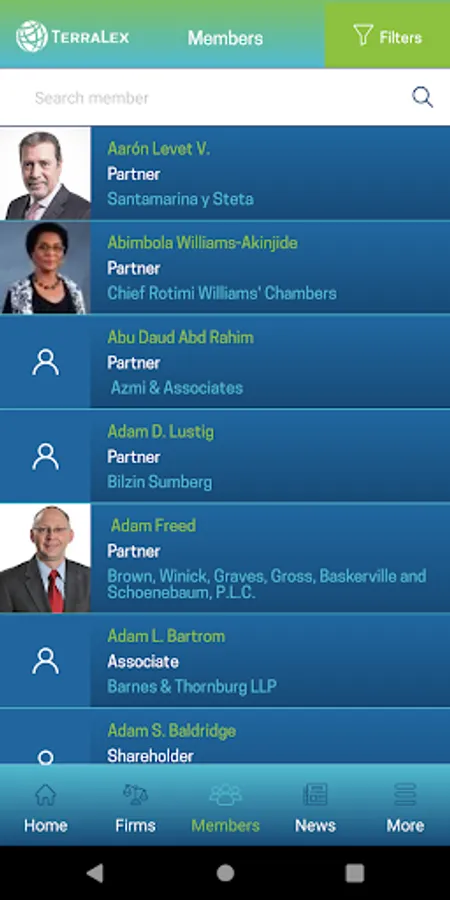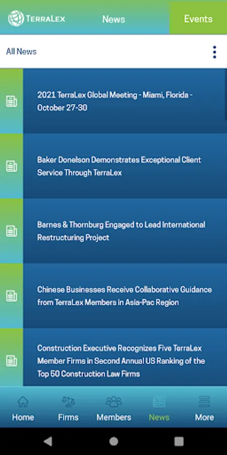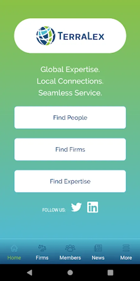 TerraLex’s streamlined app allows you to find member law firms, lawyers, or specific expertise with just a few clicks, whether you are online or without internet access. Use filters to help narrow your search to your region or the area of expertise you are looking for. The News section keeps you abreast of what is new with TerraLex members, and push notifications help keep you abreast of the latest TerraLex events and business opportunities.