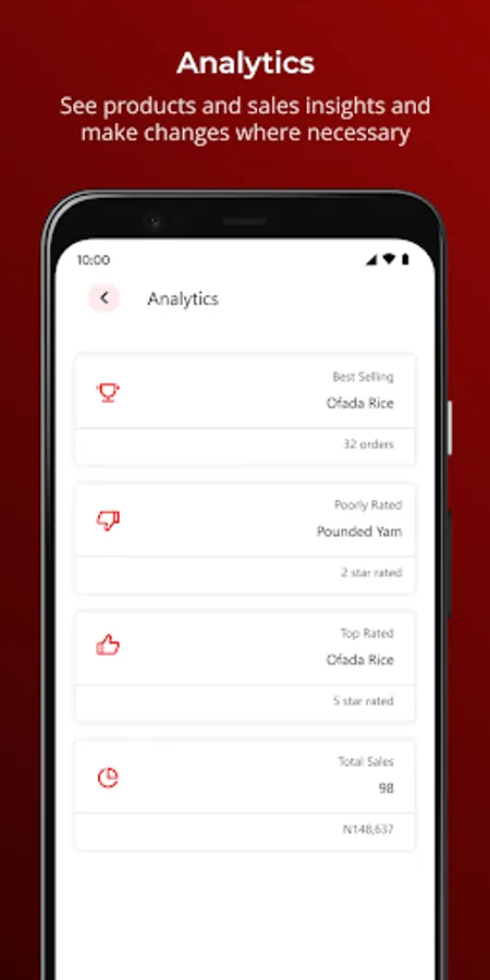 Terrachow for vendors allows physical and virtual restaurants to list their menu, upload their products, and receive orders from old and new customers in their city. Take total control of your vendor through explicit dashboards and vendor tools built to help your business grow, scale and flourish.