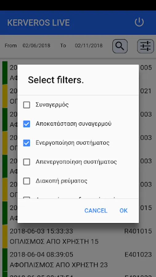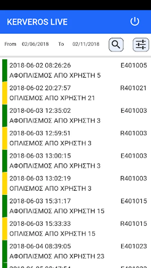 The application of Kerveros Live enables you to view your system security detail signals with timing.