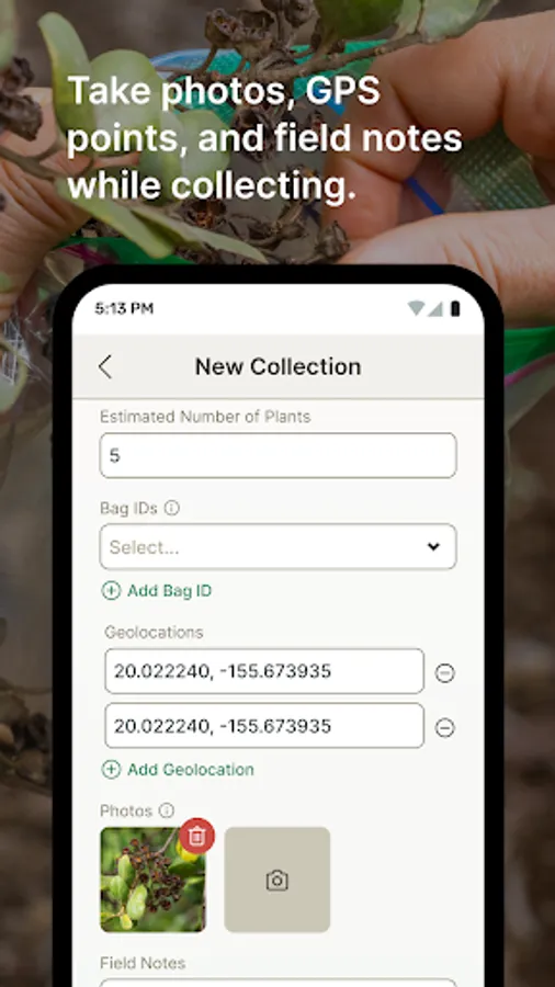 Using a mobile device, seed collectors can easily keep track of the number and types of seeds they gather. When they return to the lab to drop off their collections, they can upload information to the seed bank database, automating the transfer of specimen data and accompanying records.