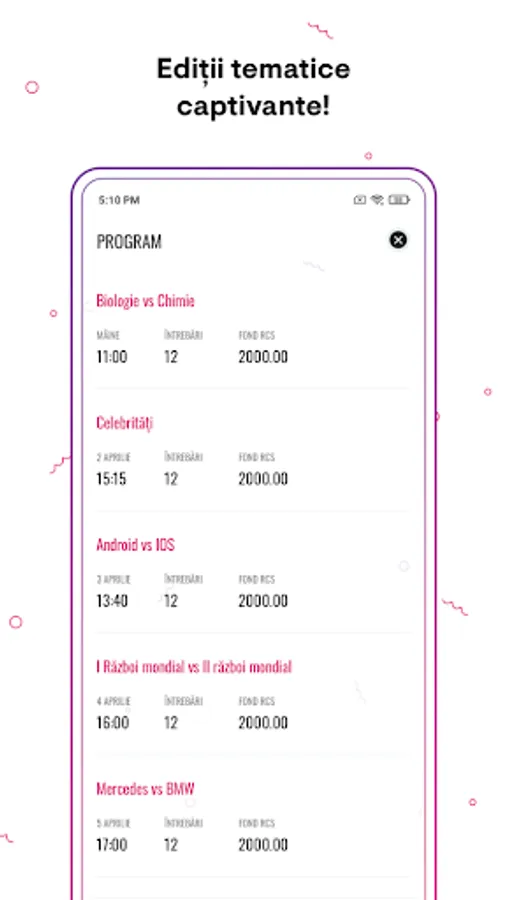 Every day, connect and choose the right answer. You have 10 seconds available for each question with increasing difficulty. Test your knowledge and see if you have the skills to be among the winners!