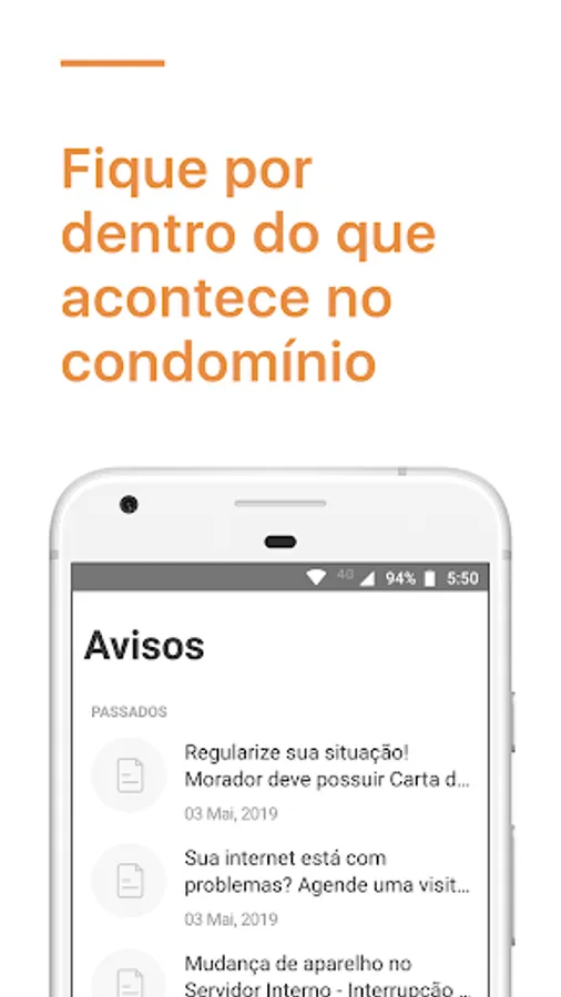 Cadastro de moradores, relatório de documentos internos, solicitação de agendamento de áreas comuns, cadastro de visitantes, avisos gerais, enquetes e ouvidoria. Tudo isso disponível de forma simples, elegante e intuitiva, a qualquer momento, em qualquer lugar.