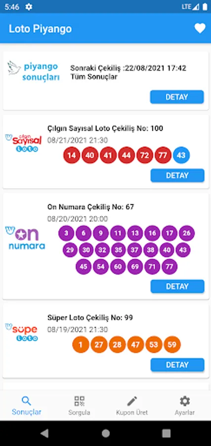 ⚠️Disclaimer: This app has no affiliation with the "National Lottery Administration". This application only shows the results of games of chance that can be played on millipiyangoonline.com.