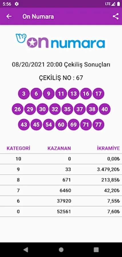 🍓 As the name of the Number Ten game suggests, 10 numbers from 1-80 are selected here. In the lottery, 22 numbers are drawn from these 80 numbers. From these 22 numbers drawn; Those who get 10, 9, 8, 7 or 6 numbers correctly, or who can't get any numbers right, win prizes.
