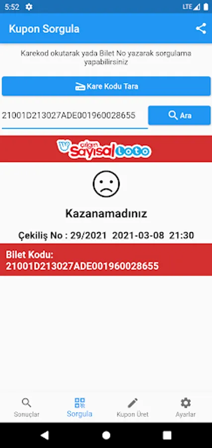 ✔️ You can inquire about your tickets by scanning the QR code or manually entering the ticket number and find out whether you have won and how much you have won.