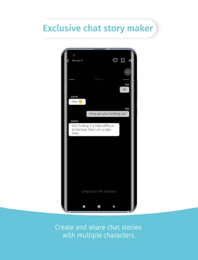 Create a chat story with different characters. Or read from a collection of chat stories by different writers. It’s almost as if you’re reading someone’s WhatsApp or Facebook chats. Tap to reveal chats that’ll keep you hooked for hours.