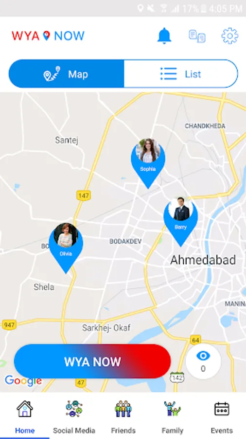 - Busses plan. You can hold the individual picture to see how far they are, or just be directed to them if they except your invite.