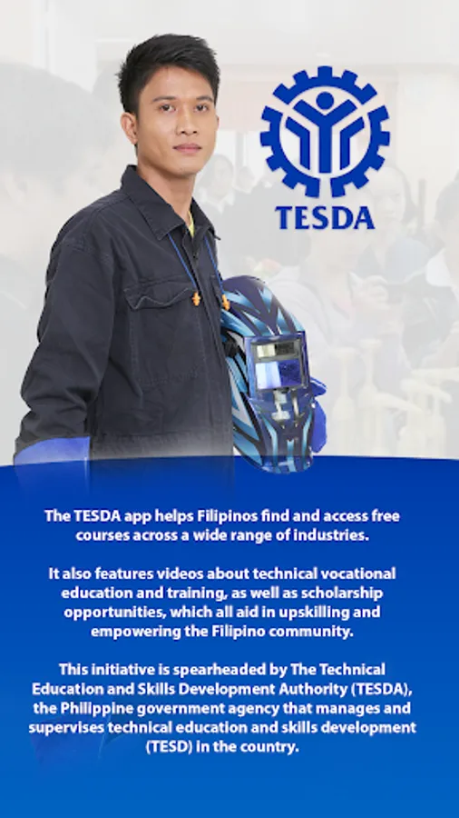 This initiative is spearheaded by The Technical Education and Skills Development Authority (TESDA), the Philippine government agency that manages and supervises technical education and skills development (TESD) in the country.