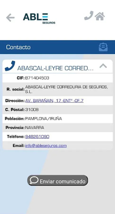 The ABLE Seguros application for mobile devices provides brokerage clients and their network of collaborators with access to their most relevant information from anywhere and at any time.
