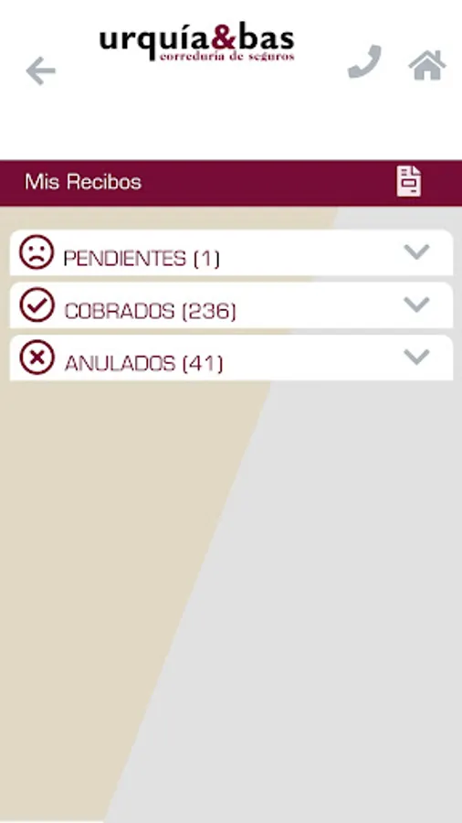 Urquía & Bas Online uses the Internet connection (4G / 3G / 2G / EDGE or Wi-Fi when possible) of the Android device of the insured or collaborator to connect the user directly to the database of the brokerage, thus allowing access to the updated and real-time data.