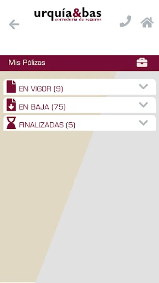 Access your insurance data easily and when you need it with the Urquía & Bas App.