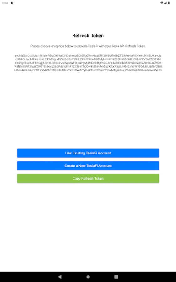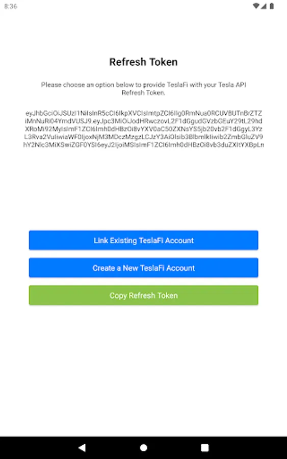 A TeslaFi app used to generate a Tesla API refresh token to link your TeslaFi.com account to your Tesla vehicle. This is only needed once during signup or if you need to relink your Tesla.com account due to a password change.