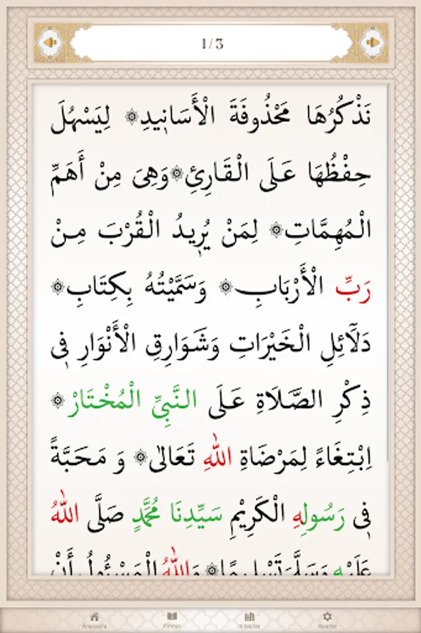 Bu uygulama Tesnim Vakfı tarafından yayınlanan Delâilü'l Hayrât kitabı esas alınarak hazırlanmıştır.