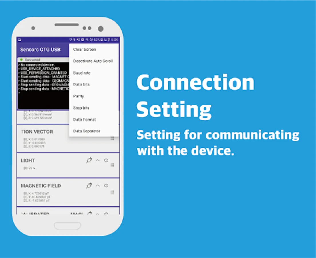 ※ To use the app, [OTG USB cable] and [USB to TTL modules] that connect smartphones to other devices are needed.