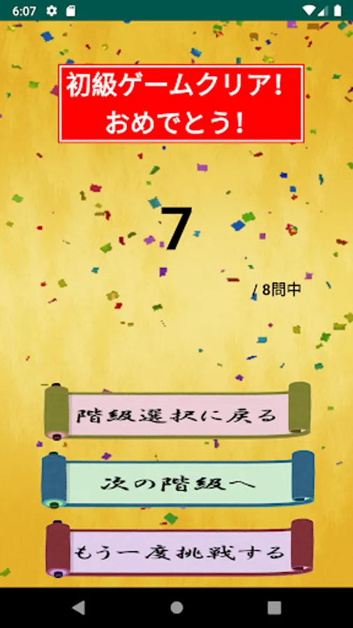 There are 8 questions. If you clear 5 questions or more, and answer 4 questions incorrectly, you will return to rank selection.