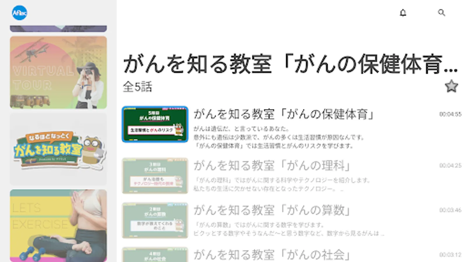 We offer informative videos, including exercise videos, travel videos, and educational content about cancer.