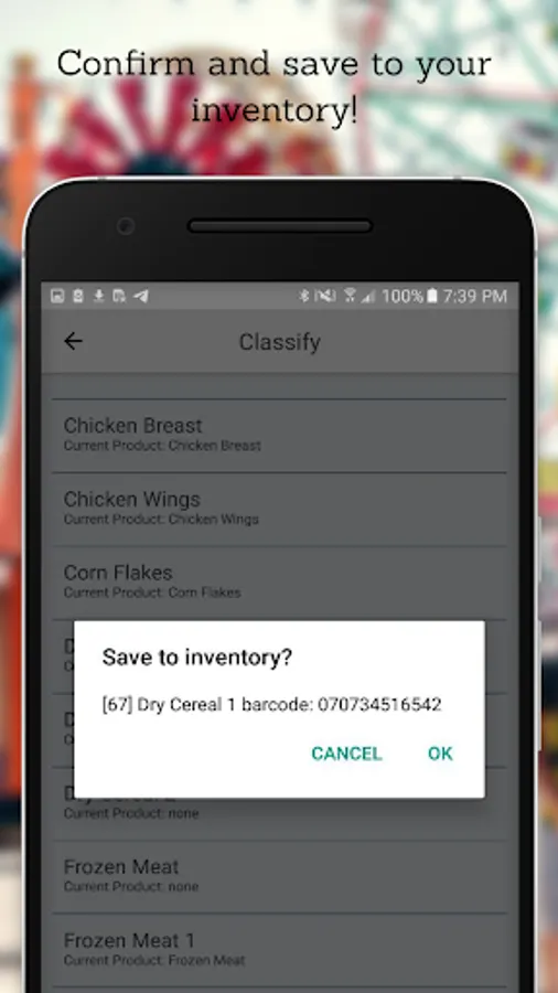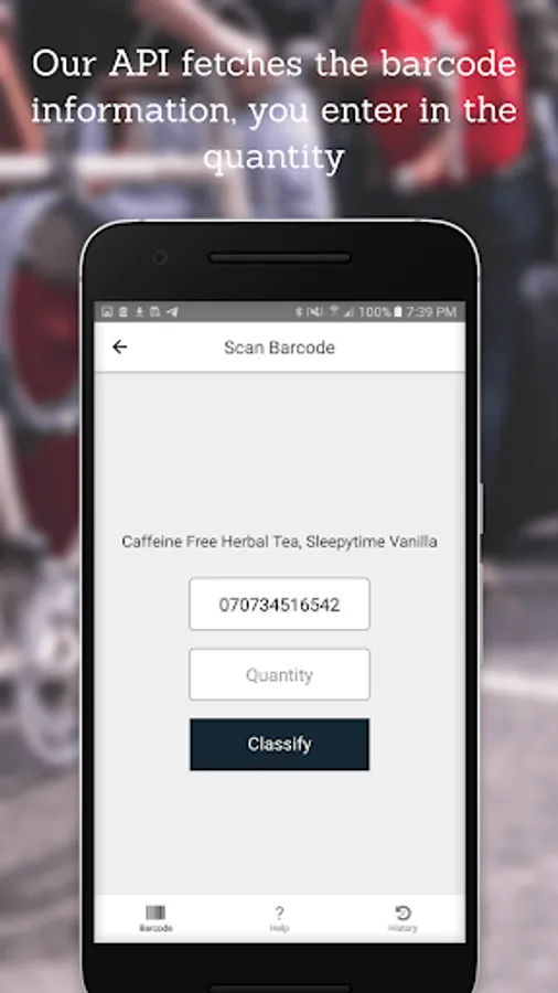 After scanning the incoming product, you can enter in the quantity of the product and select the product's classification. This data is then saved to your Kiva Logic admin and any existing product will have it's in stock numbers updated.