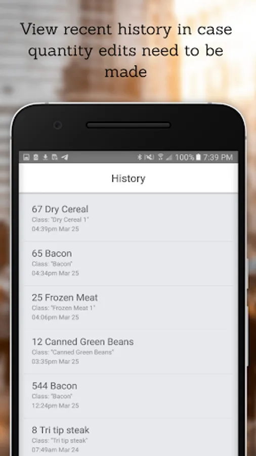 You can also view the history of scanned products, and edit the quantity or delete the inventory entry completely.