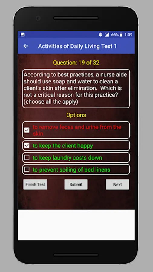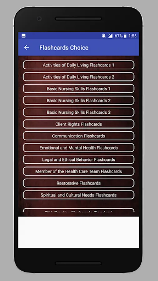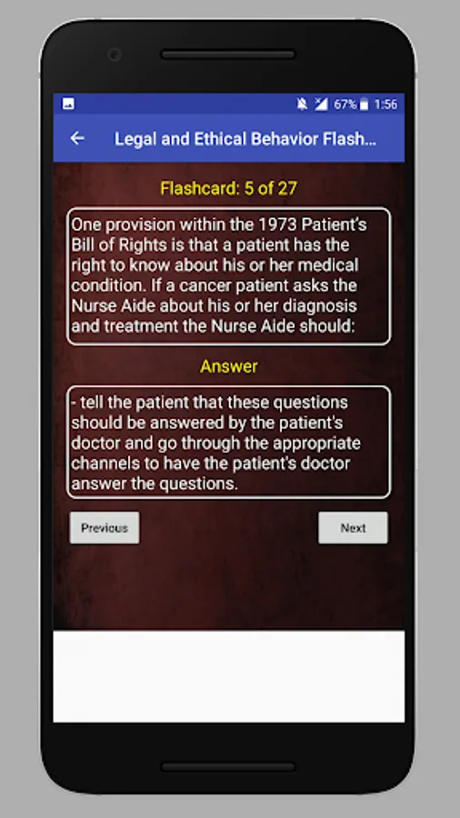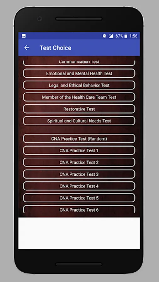 This app contains CNA test questions and answers from various categories: