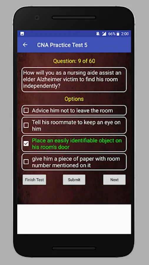 CNA Practice Test app is a free flashcard & quiz app to prepare yourself for a CNA certification test. It contains questions from the actual CNA test held in 2015, 2016, 2017, 2018, 2019, and 2020. A Certified Nursing Assistant (CNA) is someone who is a member of the healthcare team. He/She works under the supervision of a Registered Nurse (RN) or a Licensed Practical Nurse (LPN). There are different terms being used for CNA. Some of them are Nursing Assistant (NA), a Patient Care Assistant (PCA) or a State Tested Nurse Aid (STNA).