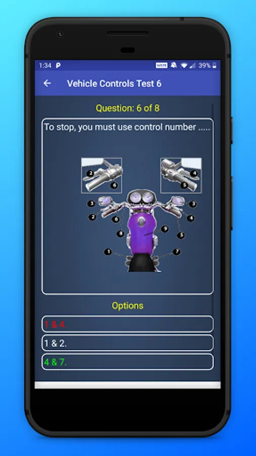 - Controls of the vehicle (6 practice tests) (Total questions: 8, Passing score: 6)