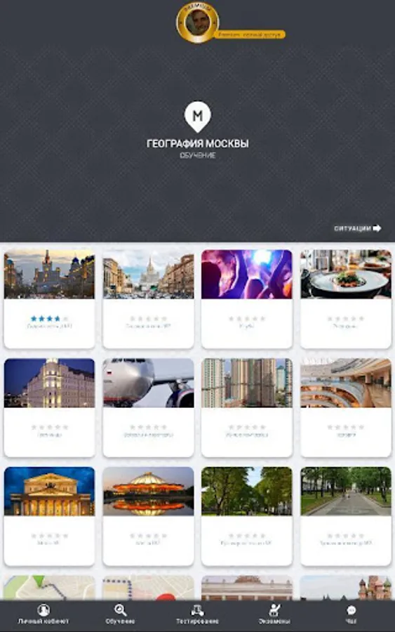 800+ questions on the geography of Moscow, standards of behavior, situations.