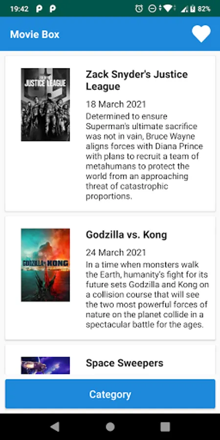 You can filter the movies based on Popular, Upcoming, Top Rated, and Now Playing movies. You can also add and remove the movies to your favourite list and also see the reviews of the movies.