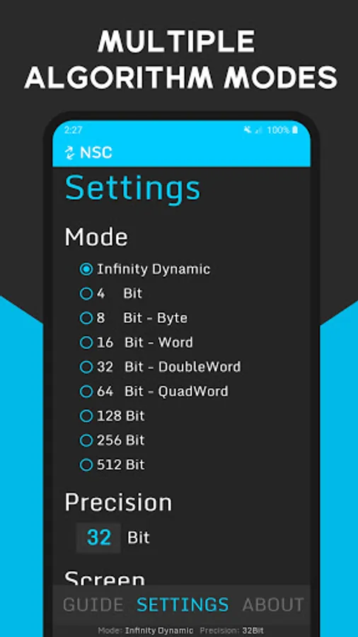 - Advanced Operations : AND, OR, XOR, NOT, NAND, NOR, XNOR, two's complement, Remainder, MOD, Left Bit Shift and Right Bit Shift