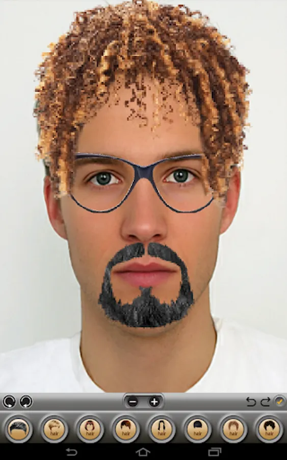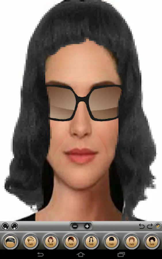 -> You can choose a wig you like. You just dip fake hair that wig long or short. Then tap on your image, then zoom in, out or delete.