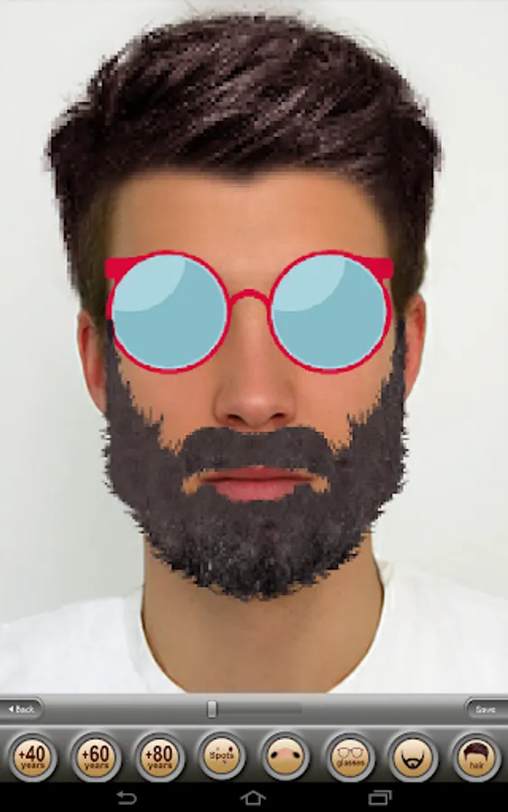 Convert yourself into an aging old grandpa or grandma; add monocle or glasses and a funny beard. Immediately save the image to your gallery, or share it to popular social services such as Facebook, Twitter, Whatsapp or Google Plus. What will you look like when you’re old? And what about your friends?, What would you look like if you were bald? And what about your friends? Find out an easy to use and amazing face aging machine on your Android device. With this fun photo editor you can make your face look decades older. Age yourself so you look like your parent or grandparent! Add funny glasses and a beard, moles etc. and your friends won't recognize your senior face anymore! it is a funny (or sometimes scary!) way to instantly age face photos. Use this app on family, friends or colleagues photos and share them via email, MMS, FaceBook, Twitter.