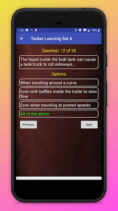 - Total of 200 unique learning sets to study for the DMV tanker test