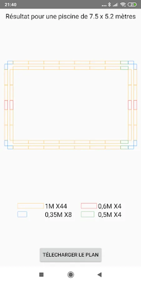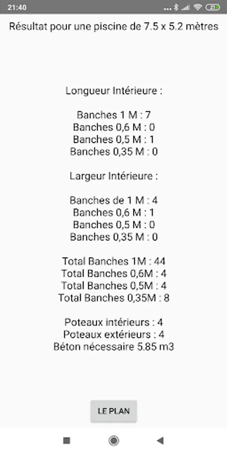 Calculations of the number of Banches necessary and creating the plan associated with the completion of a n x n pool