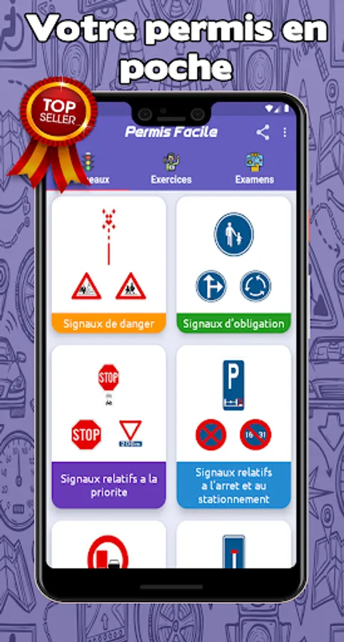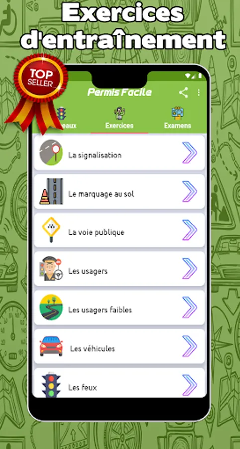 L’app propose des simulations d’examen pour compléter votre préparation à l'examen théorique du permis de conduire