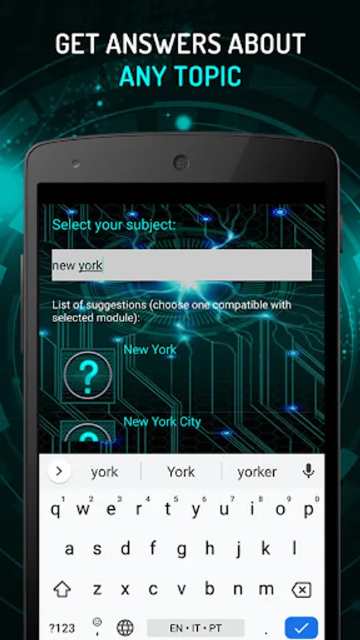 ★ THEMATICS MODULES: This real artificial intelligence creates presentations, does web search and answers to questions or requests about any topic using wikipedia, wikiquote, google, feed rss and internet.