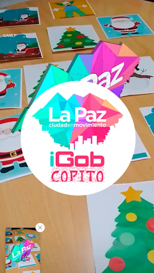 iGob COPITO is an Augmented Reality application for Christmas, you can download the downloadable images and print them in color and in the comfort of your home place the images on a horizontal surface then you must read these images with the application installed and some objects will be displayed in 3D like the papanoel, character from the simpsom program or a little tree.