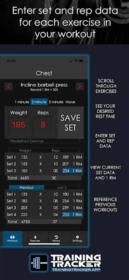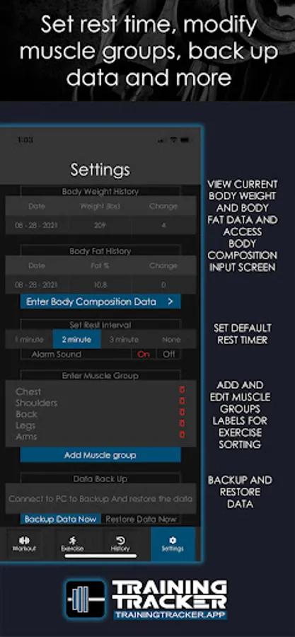 Training Tracker is a simple, powerful, easy to use fitness app for logging weight training workouts and tracking results of performance and body composition.