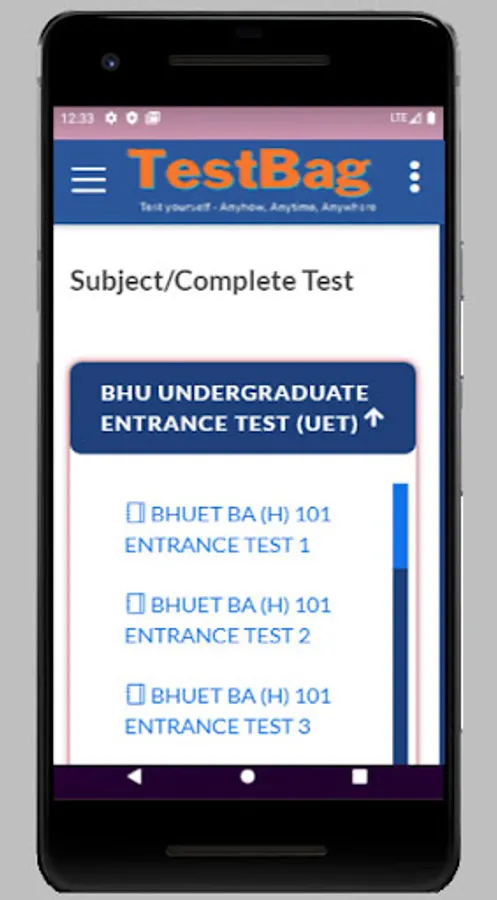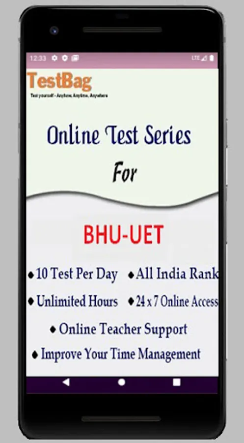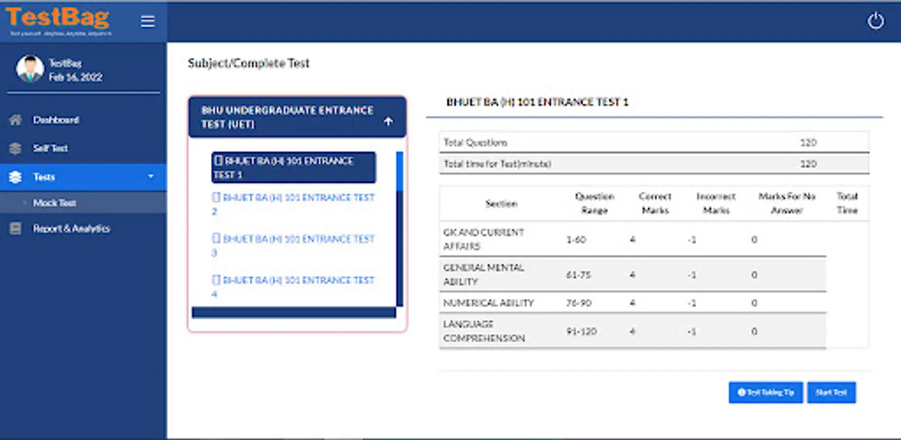TestBag provide BHU UET online Sample Mock Practice Test Papers, Test series, old Paper & many more based on latest Exam Pattern and syllabus