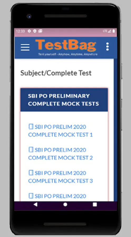 TestBag provide SBI-PO Free online Sample Mock Practice Test Papers, Test series, old Paper & many more based on latest Exam Pattern and syllabus