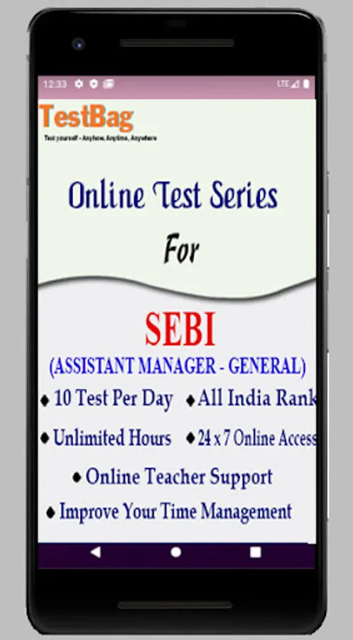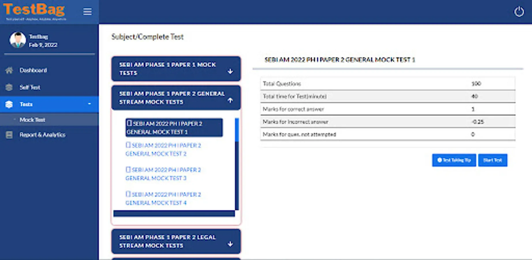 TestBag provide SEBI Asst Manager online Sample Mock Practice Test Papers, Test series, old Paper & many more based on latest Exam Pattern and syllabus