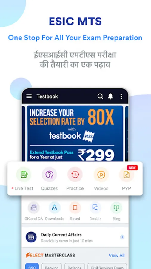 Install our ESIC MTS - Testbook App today and enhance your chances of selection in the upcoming ESIC MTS 2022.