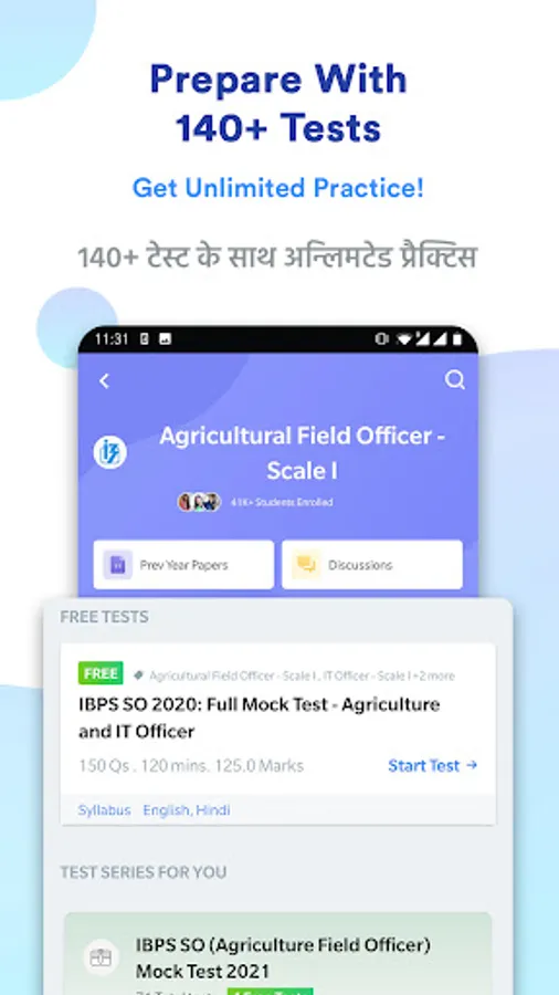 Bilingual: To make it available for most of the candidates out there, the IBPS SO Agricultural Field Officer App is Bilingual and is now available in Hindi as well as in English.