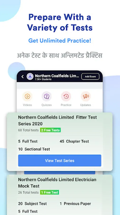Bilingual: Testbook Northern Coalfields Limited Preparation App is designed Bilingual for a Hindi and English speaking audience.