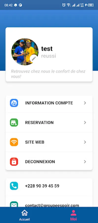 Application allowing customers to interact with the reception of the Residence Groupe Espoir