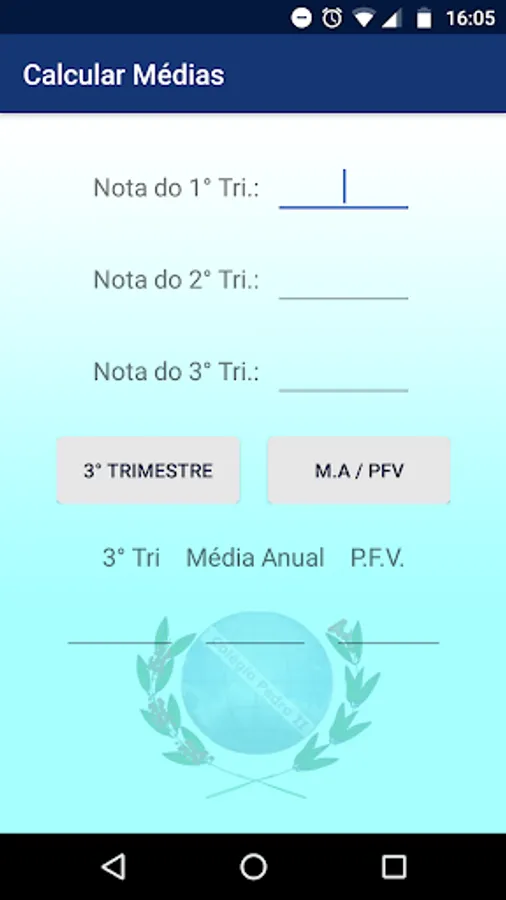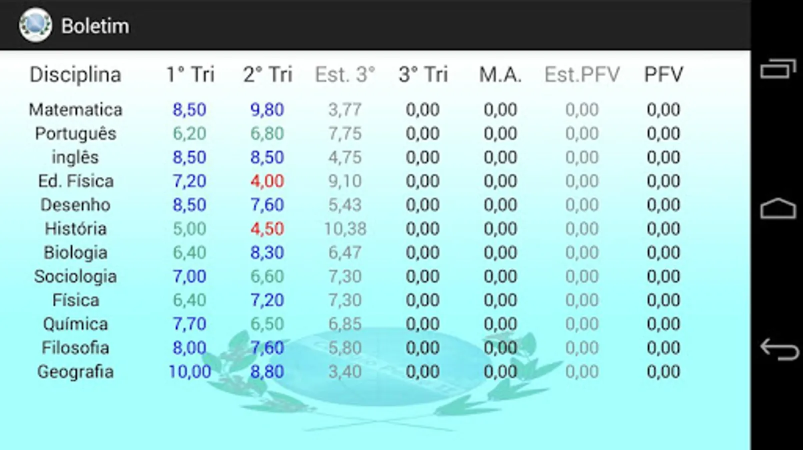 Tired of calculating how much you need to draw in the 3rd Quarter on the last sheet of the notebook? Or the annual average and the PFV in the competition corner? Download now this application that has an exclusive newsletter that to save your notes, simple calculators for annual average, note for the 3rd quarter and PFV. Simple, useful and easy to use. Keep your notes in the palm of your hand!