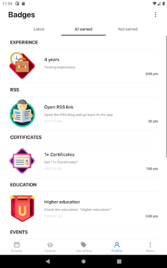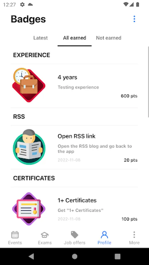 Profile / Badges - this is an idea to play with gamefication concept in software testing.