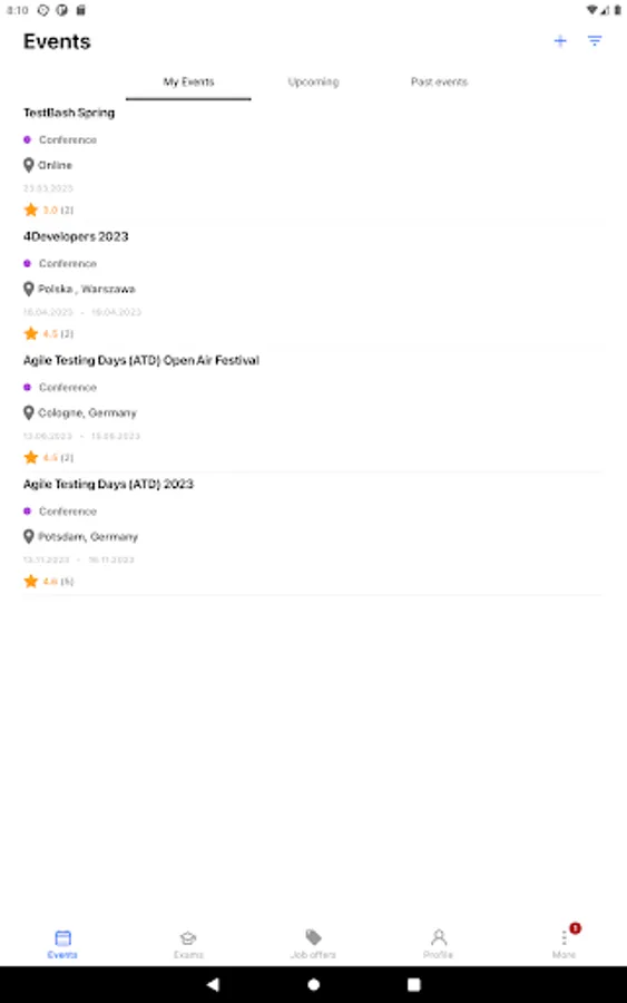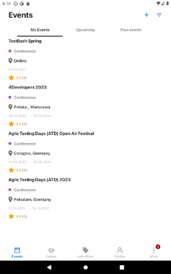 Events - to help and to remind you about your exam, training, conference, meetup or job interview.