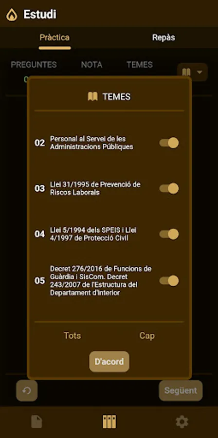 - You will receive a mock exam with 95 new questions every fortnight, prepared specifically for the preparation of the Generalitat de Catalunya knowledge exam.