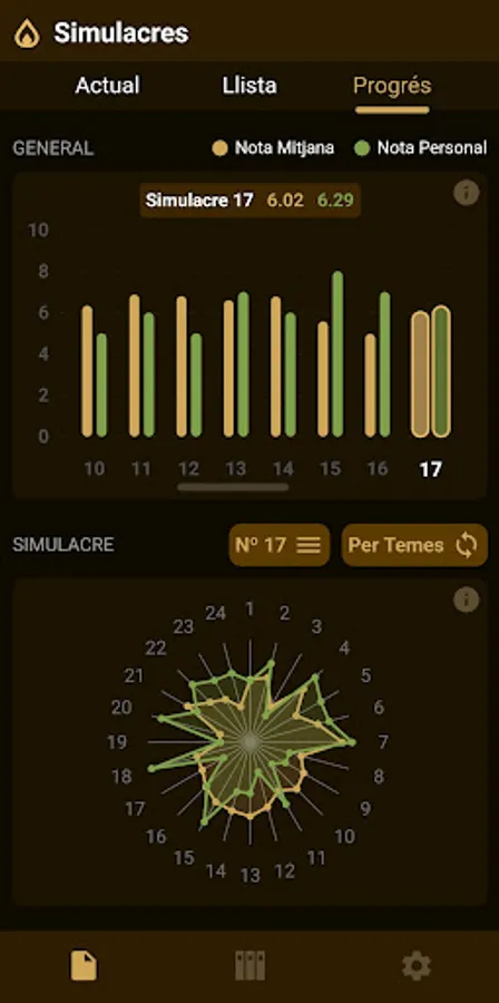 - You will be able to review the subjects you do best and worst and compare your grade with the average grade of the other users.