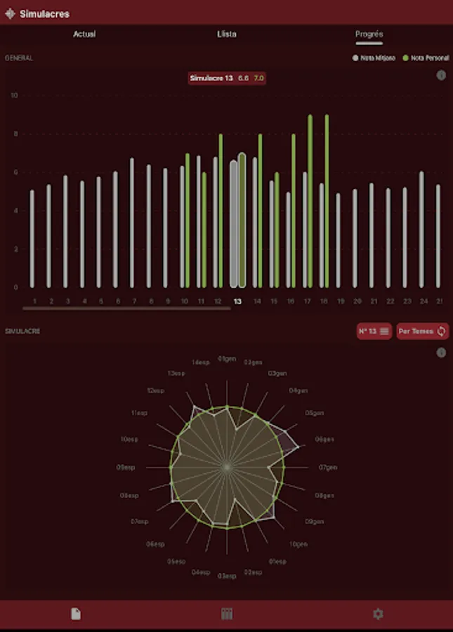 - You will be able to review the subjects you do best and worst and compare your grade with the average grade of the other users.