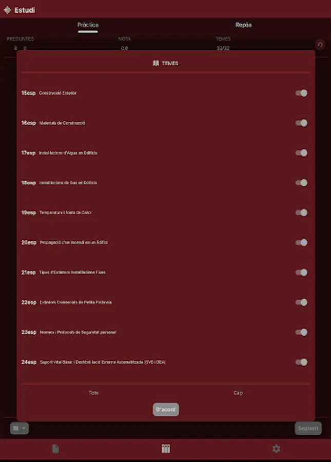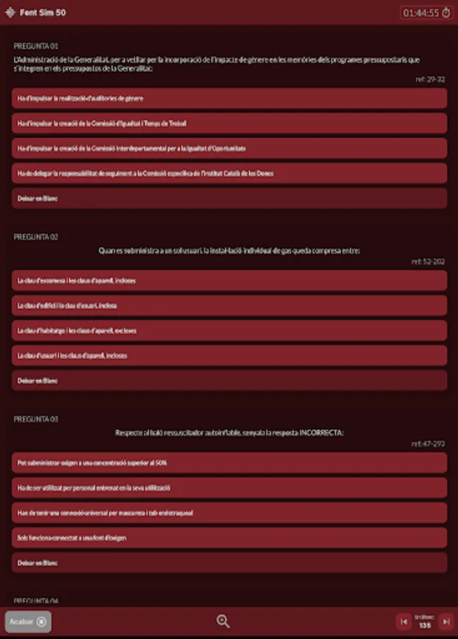 - You will receive a mock exam with 120 new questions every fortnight (40 from the general syllabus and 80 from the specific syllabus), prepared specifically for the preparation of the knowledge exam for access to the Barcelona Fire Brigade.